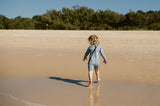 - Long sleeve arm, short leg and full back zip. Allowing for quick and hassle-free changes, and less sunscreen wars!